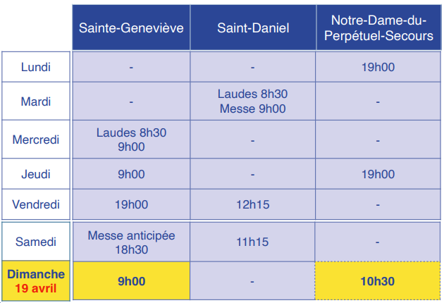 Avec les vacances, les horaires des messes changent