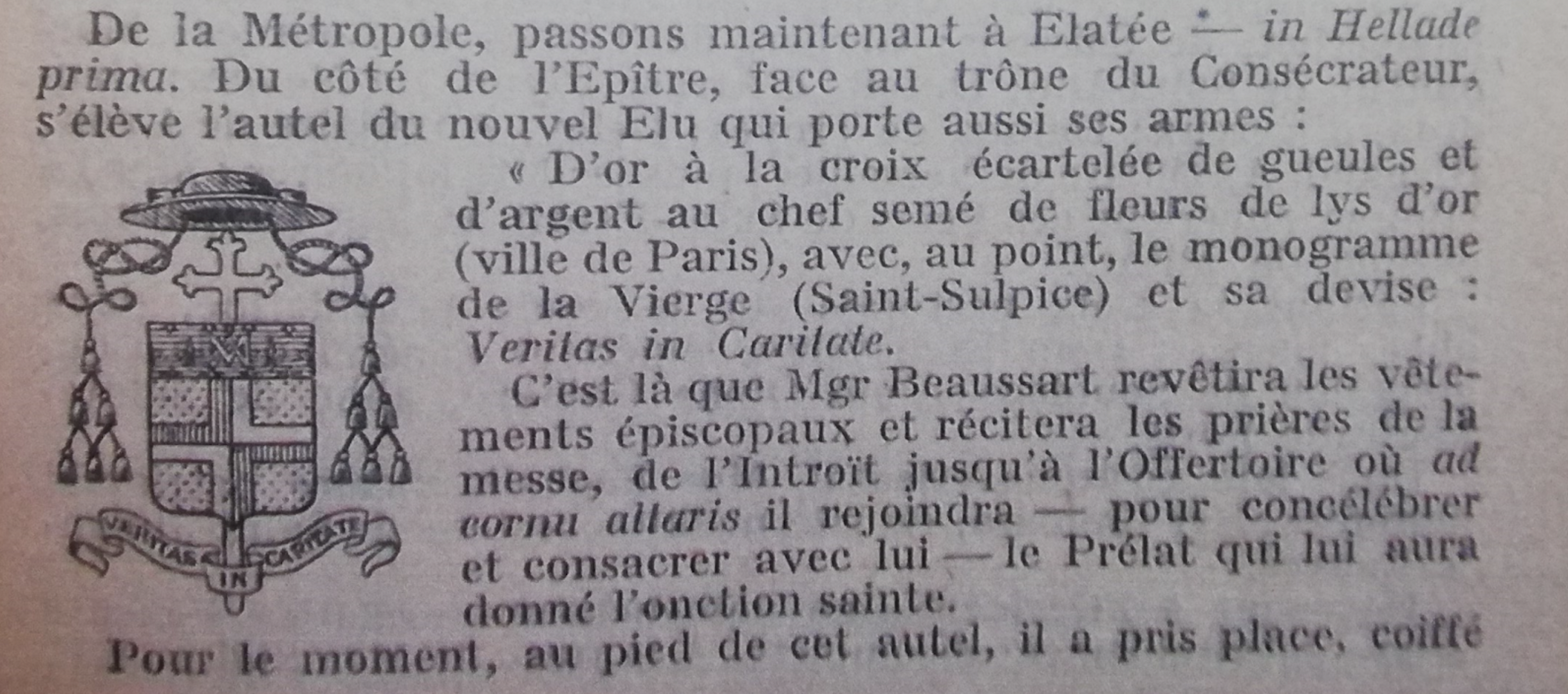 De l’autre côté du chœur sont les armes de Mgr Beaussart, Vicaire général de Paris